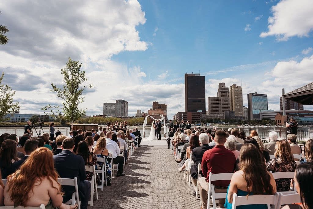 Nestled at the Docks along the Maumee River, our venue offers an unforgettable waterfront experience for your special day. Say "I Do" with a stunning waterfront ceremony, framed by sweeping river views and the tranquil ambiance only the water can provide. Featuring a timeless black and white interior, our ballroom is the picture of classic elegance, providing a versatile canvas to bring any wedding vision to life. Whether you're planning a chic modern affair or a more traditional celebration, our venue blends natural beauty with refined design to create a seamless experience from start to finish.