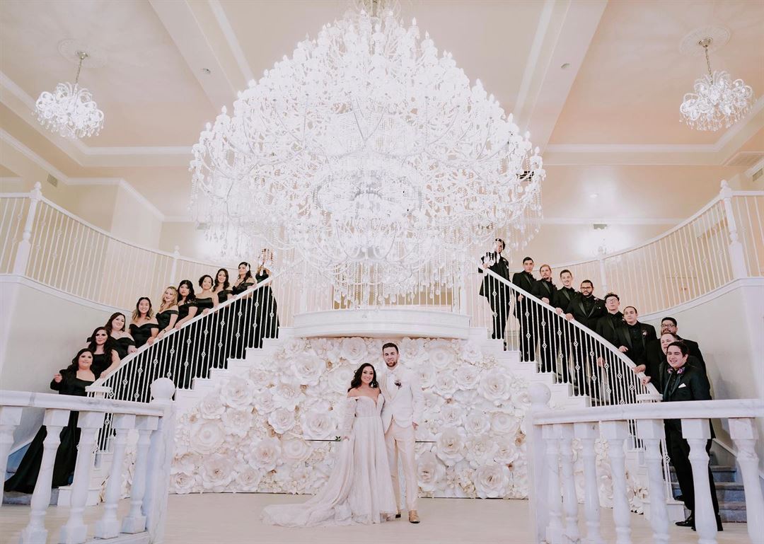 The beautiful 16 ft diameter white crystal chandelier greets you with its softly shimmering lights. Your eyes travel to the Baby Grand piano bathed in white light, softly playing in the corner, the music wrapping around you to soothe you with its hauntingly beautiful notes.