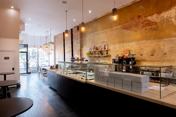 Nestled in the heart of Toronto, our café exudes a warm and inviting ambiance that effortlessly blends modern sophistication with a touch of rustic charm. The high ceilings create an open and airy atmosphere, allowing natural light to filter through, casting a gentle glow on the carefully curated space below. The brick walls, adorned with tastefully chosen artwork and strategically placed plants, add a sense of urban chic to the setting. The centerpiece of the café is the full barista station, a hive of activity where skilled baristas craft intricate designs atop velvety espresso creations. The aroma of freshly ground coffee beans permeates the air, creating an olfactory journey that entices patrons as they step inside. Alongside the coffee haven, a pastry display case showcases an array of delectable treats.