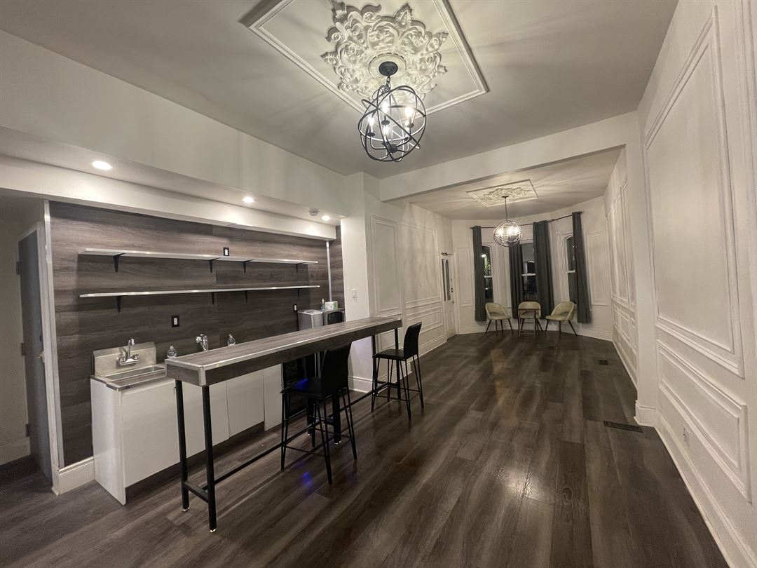The Light Room boasts 10 foot high ceilings and bay windows facing Kensington Ave. It comes with a built in Bar with two fridges, 2-compartment sink, hand washing sink, ice maker, espresso machine, and microwave. Bar table is portable and can be placed anywhere in the room.