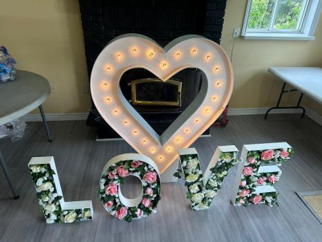 Marquee letters with lights and marquee table letters are popular wedding decor rentals and event decor rentals. Our Toronto light up letters are made out of wood with bright amber lighting for a beautiful glow. Rent light up letters in Toronto or across Ontario for your next special event.