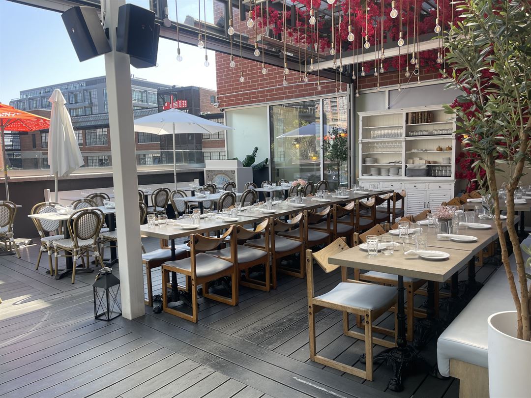 Spread across 7,000 square feet, in a bright, open-concept layout, NODO Liberty offers the flexibility of multiple private and semi-private configuration options. Spaces throughout the room that can be opened up for full restaurant buyouts of up 475 guests, or divided into sections to accommodate groups as intimate as 15. In warmer months, a spacious 2,600sq foot outdoor patio space, with fully retractable window wall, is opened to merge the inside with the out.