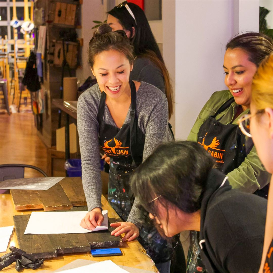 At Paint Cabin you’re invited to a highly entertaining and energetic atmosphere, where for a few laid-back hours, you’ll each be creating projects of your choosing, and enjoying the company of your friends and colleagues. With plenty of snack and drink options and music that'll make you want to dance, we’ve designed the perfect vibe that will make for a memorable event.