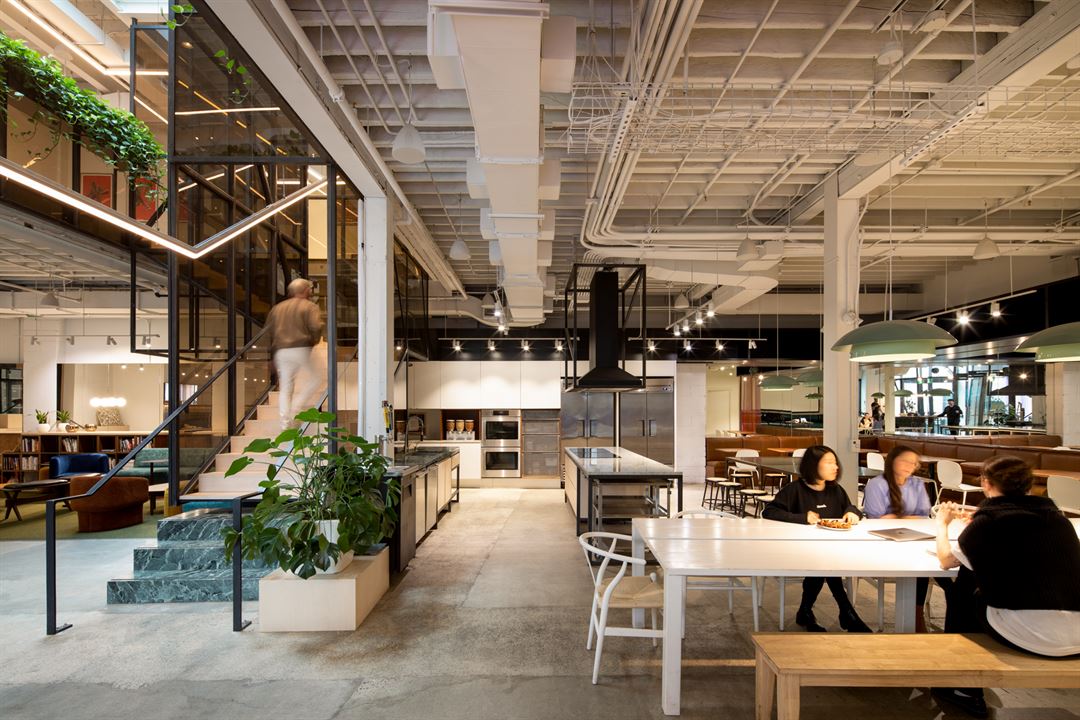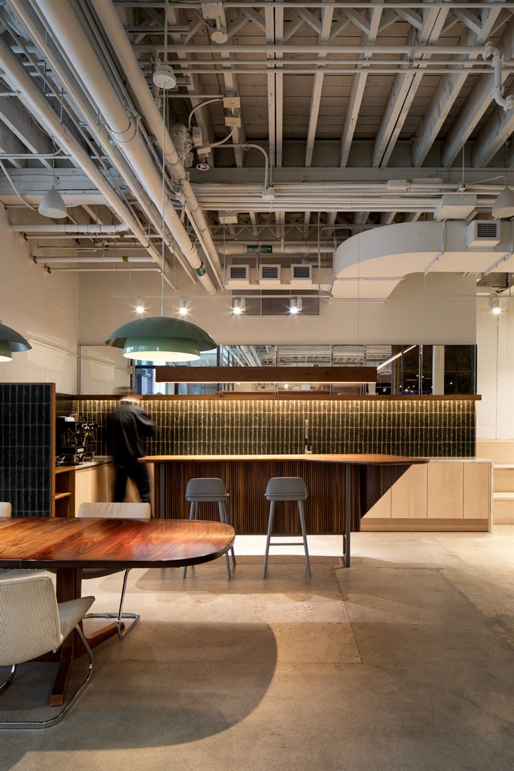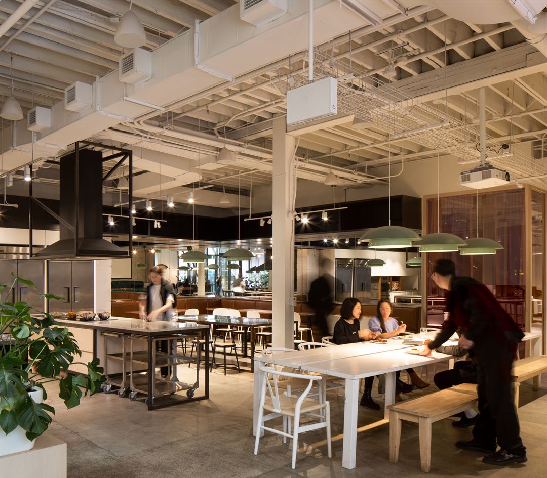 Designed with productivity and innovation in mind, Sid Lee Toronto offers a range of amenities that make it an excellent choice for workshops and conferences. The spacious kitchen area, equipped with state-of-the-art appliances and ample counter space, doubles as a communal dining area or an additional workspace. This area is ideal for culinary workshops or catering during conferences. The long communal tables in the dining area provide a collaborative setup, encouraging interaction and networking among participants.