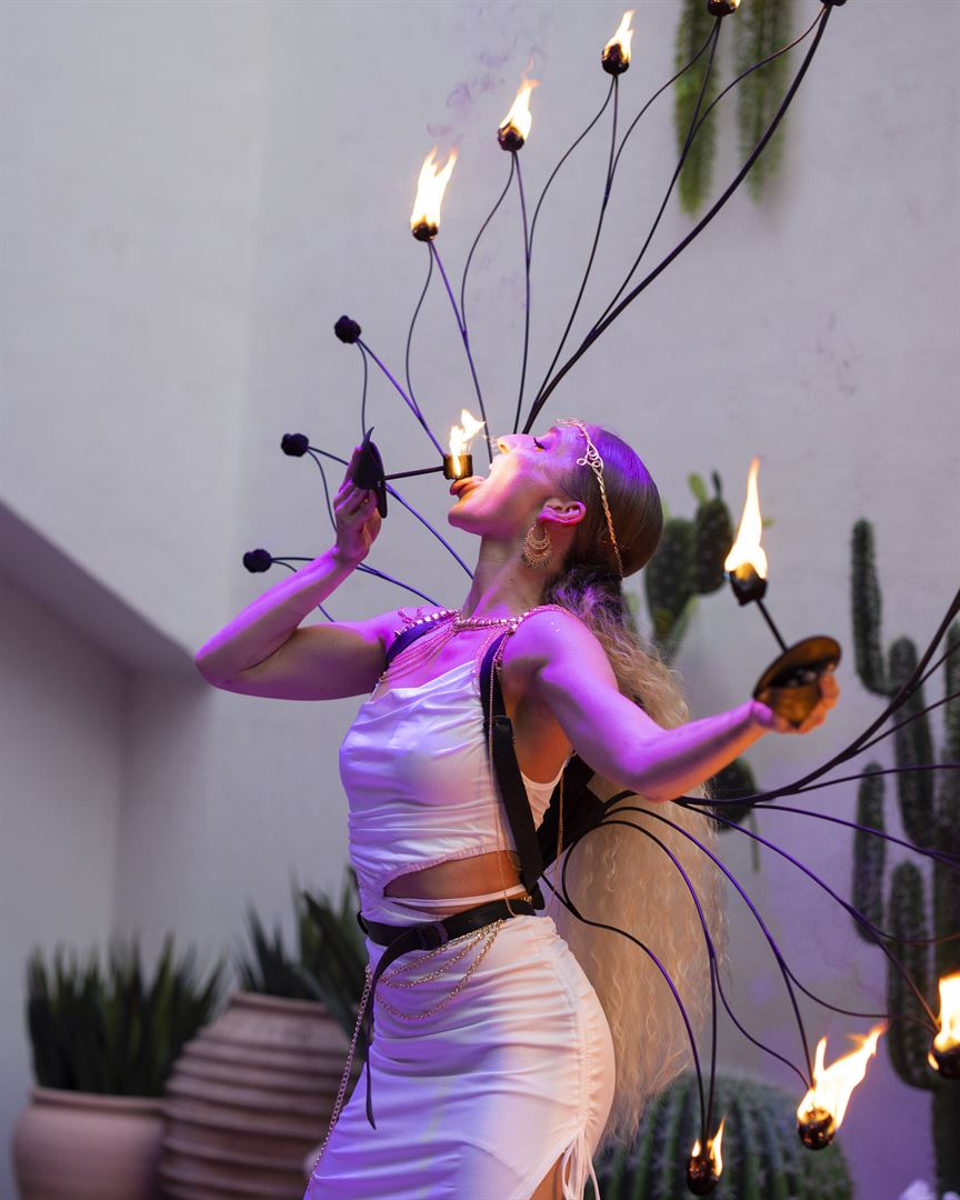 Soluna is a 8,500 ft hidden indoor and outdoor oasis, which resembles a tropical resort with food and cocktails inspired by the coasts of the world. It's a place where the party melts from day into night, and a place that understands that vacation vibes don’t need to end the minute you step off the plane. As the sun sets, we transform the space into an ultimate entertainment escape. A combination of musicians, dancers, performers, and DJs will take you on a visual and musical journey.