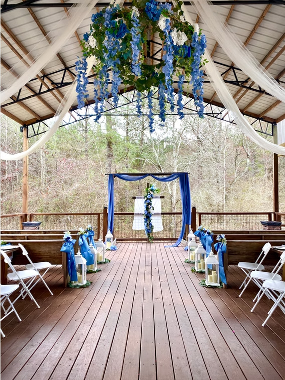 Whispering Winds Events is a unique venue. Your event will be the one your guests will remember. With a rustic style and peaceful elegant atmosphere located in rural central Alabama in Jefferson County just 25 minutes north of Birmingham, it is the perfect covered outdoor venue for weddings, receptions, private events, corporate events, family or class reunions, quinceaneras, proms, celebration of life, and so many other special occasions. Surround yourself with nature’s rustic beauty in an amazing setting where the sunsets will captivate your guests. The Pavilion at Whispering Winds is an open-air pavilion and seats up to 175 guests. Let us help you plan your next event. It will be the easiest event you’ll ever plan. Whether you choose to invite 15 or 150 guests, Whispering Winds will bring your wedding, party or event to life.