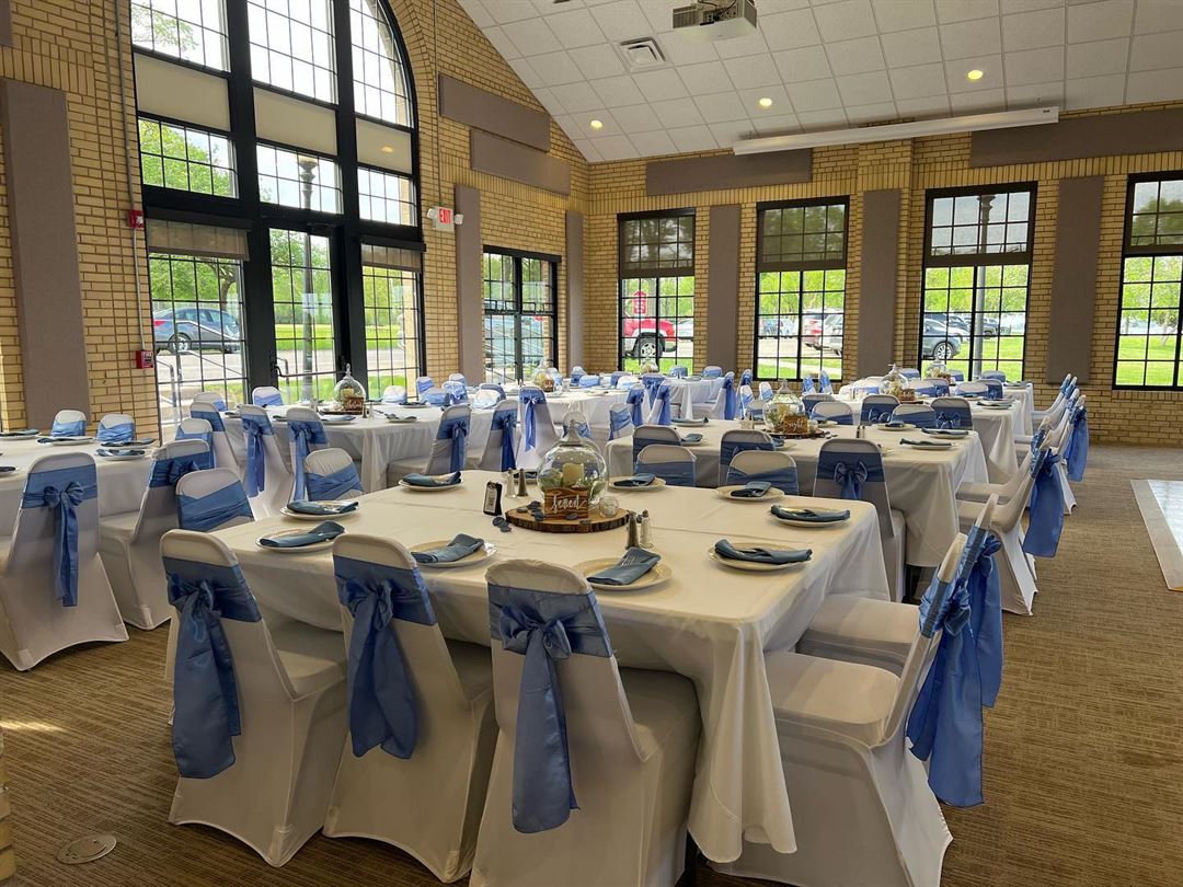The Chateau on the River is located within the grounds of Elizabeth Park in Trenton, Michigan. The historic park was given to Wayne County Parks by the Slocum Family in the 1920's. This unique venue is located along the Detroit River across from Grosse Isle Island. The Chateau on the River is a newly renovated facility that features granite bathrooms, a Riverview terrace, and cocktail/reception space adjacent to the Main Hall. The Main Hall has a capacity for 190 guests and features a state of the art AV system including twin projectors and sound system.