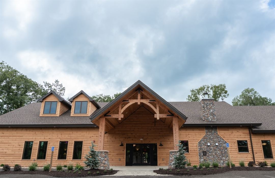The venue also features waterfalls, a trout pond and stream, a gazebo and dock including a beach, with many ideal locations for outdoor ceremonies and photo sessions. Inside, exposed timber trusses decorate the high vaulted pine ceiling, with a stone wood burning fireplace giving your ceremony and reception a warm, inviting atmosphere. The building includes bride and grooms rooms with plenty of space to get ready for your special day, as well as a buffet room, stage with an indoor and outdoor premium Bose sound system, a fully stocked 30 ft stone and log bar plus an 86 inch TV with multimedia, and an upstairs lounge and game room.