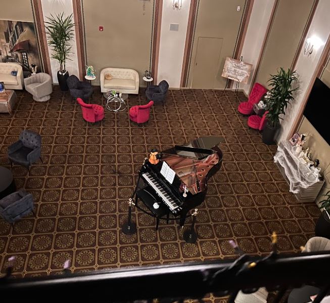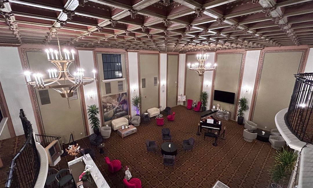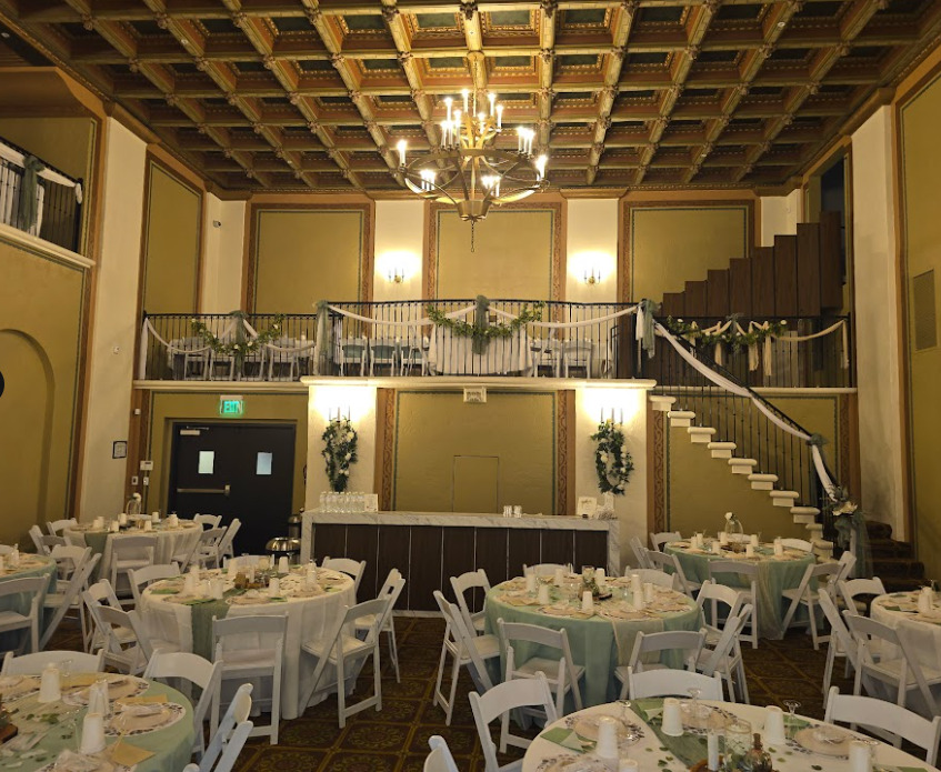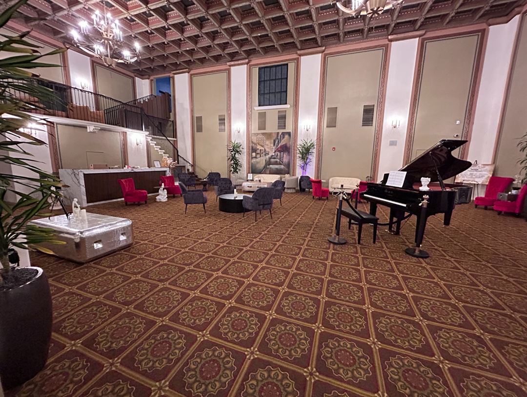 This ballroom is something special. You walk in and feel the history right away. The vintage details, warm carpet, and glowing chandeliers make it timeless and inviting. It’s got real charm, real soul, and that effortlessly cool vibe you can’t fake.