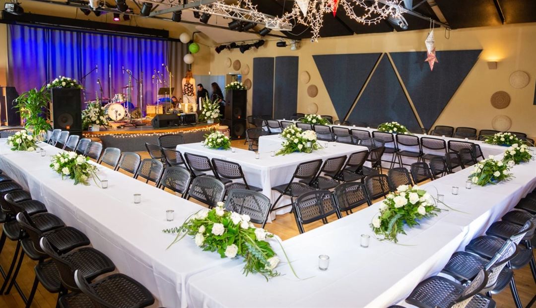 Our unique establishment offers a variety of venues: The main Event Hall, a more intimate room called The CosmoArt Studio, a beautiful outdoor courtyard and upper patio with water feature and beautiful views, as well as a Lounge and bar area. The Event Hall is equipped with state of the art audio and lighting, as well as a projector and full-size, retractable movie screen.