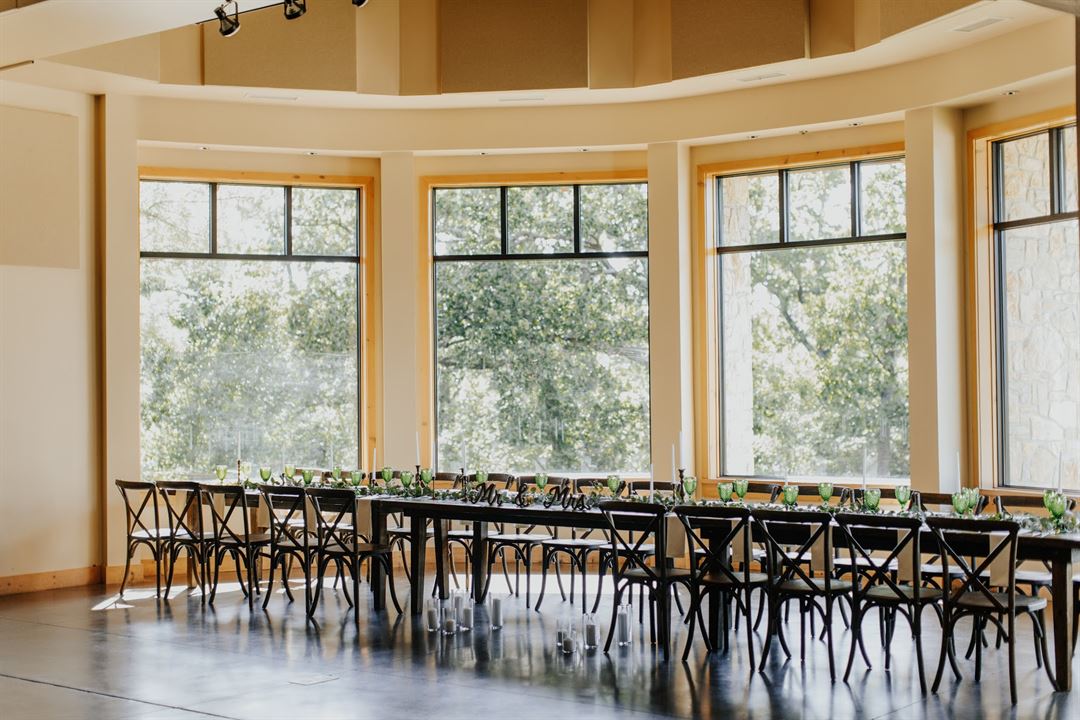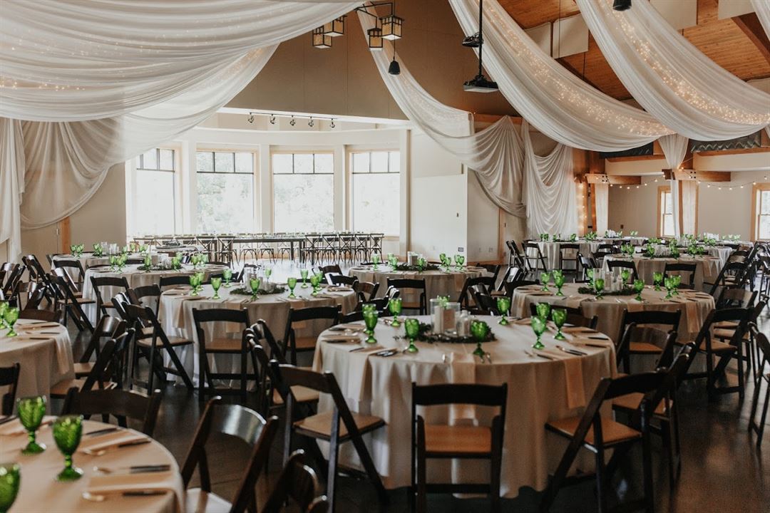 The Temple Conference Center features a double-sided fireplace, lakeside view, vaulted ceilings complete with huge bay window perfect for dancing the night away in celebration. Capacity is 300 seated.