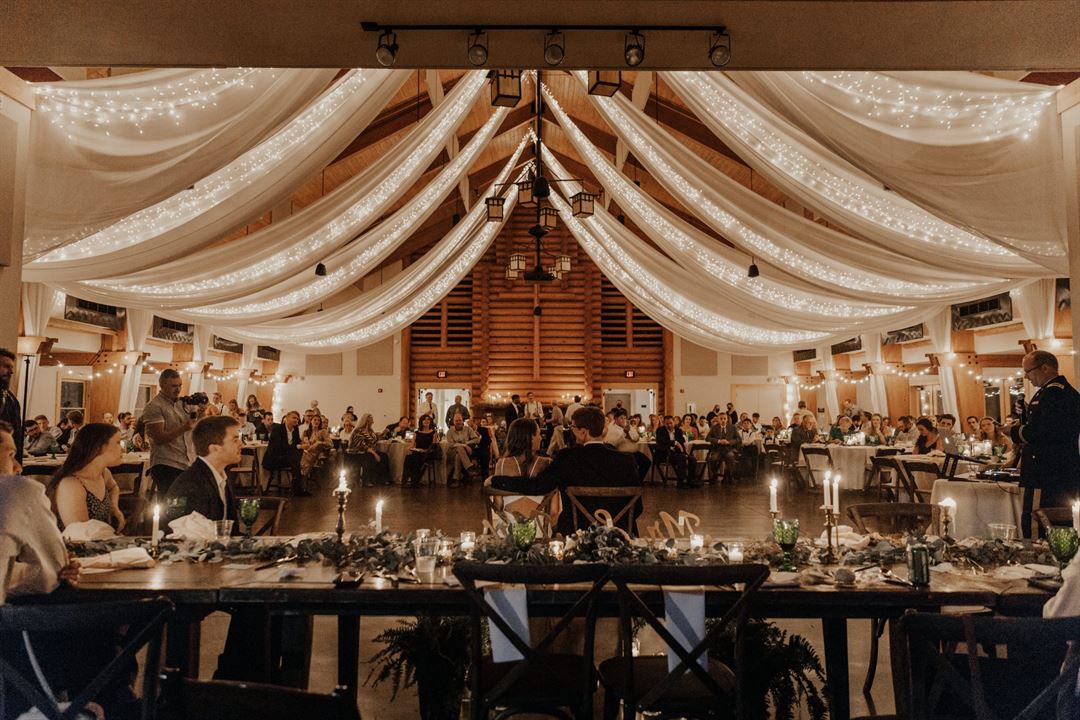 The Historic Lodge with deck that overlooks the lake provides an intimate family setting for receptions up to 125.
