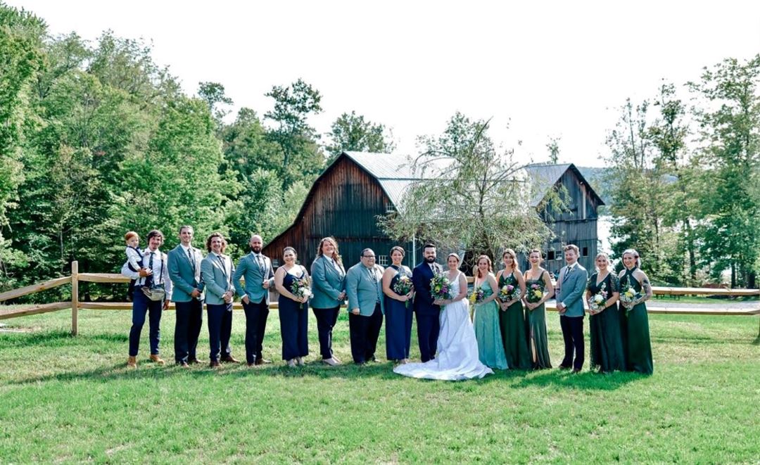 The main event space! Rustic and refined, this historic barn at Old Carter Farm, overlooks scenic Lake Carey- 5 miles north of Tunkhannock, PA. In the summer of 2020, a historic gazebo, dating to the early 1900’s, was moved from across the lake and now sits on the waterfront of Old Carter Farm. Making for a stunning backdrop for ceremonies.
