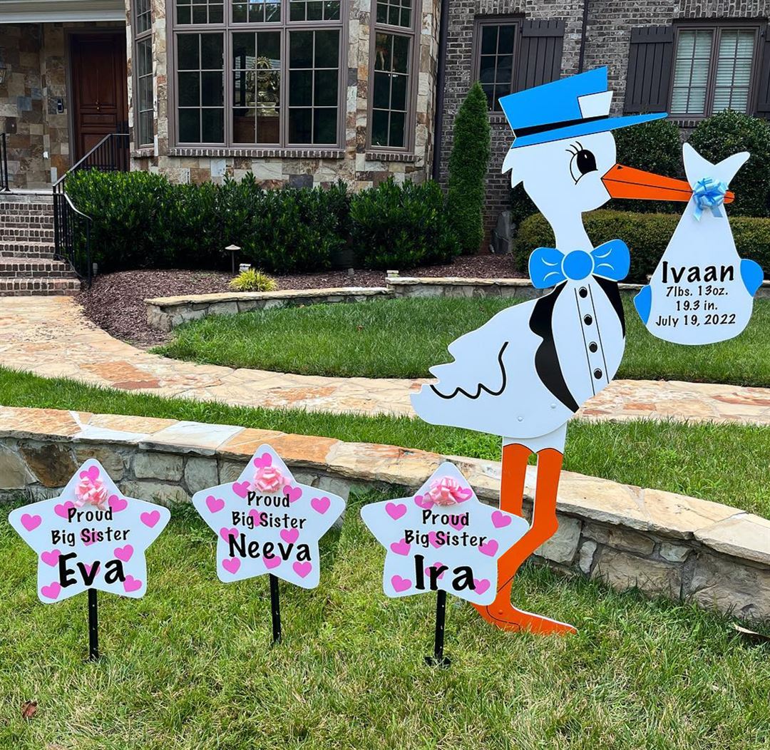 Turlock Storks and More delivers unique 6-ft stork signs for your front yard to welcome your new baby home. It is the most special way to announce to your friends and neighbors that your newest member of the family has arrived. Our lawn signs will surely be the talk of the neighborhood for months. We serve Turlock, Hughson, Denair, Modesto, Ceres, Merced, and Hilmar in Stanislaus and Merced Counties.