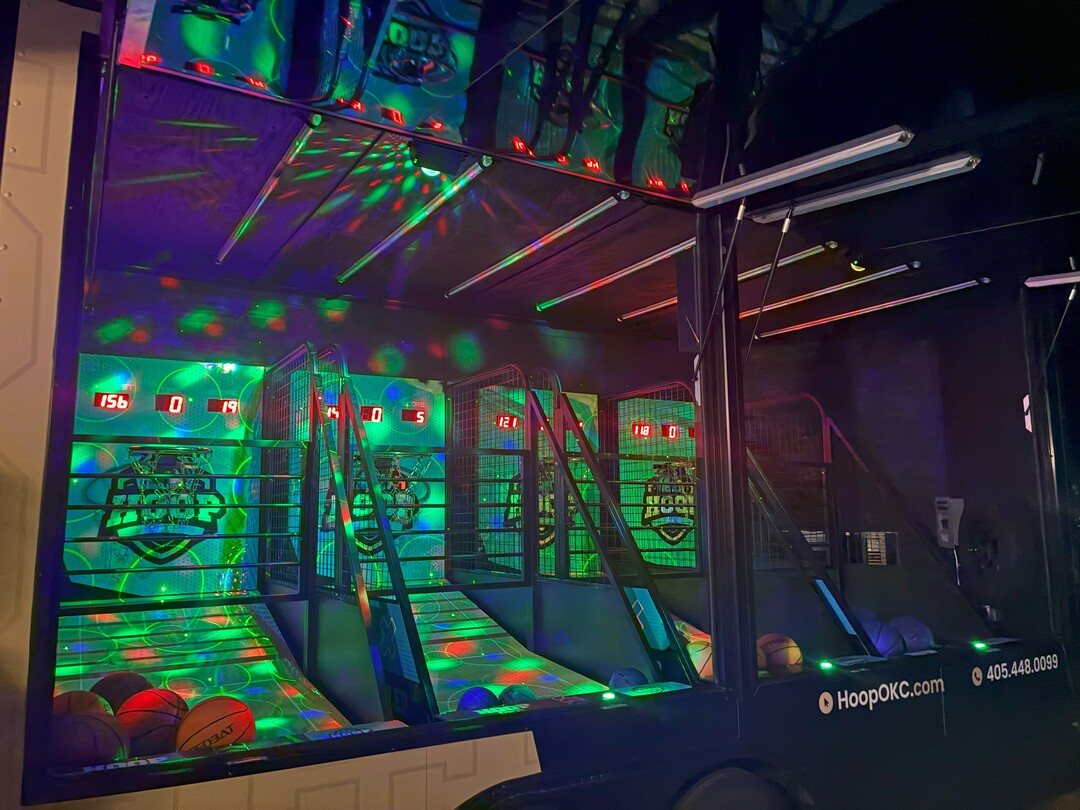 Our mobile basketball arcade trailer can be rented for events: We drop off the trailer, set it up, provide a quick demo, then leave you to host your event.