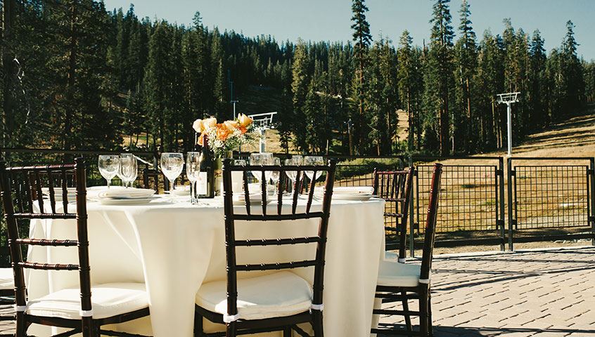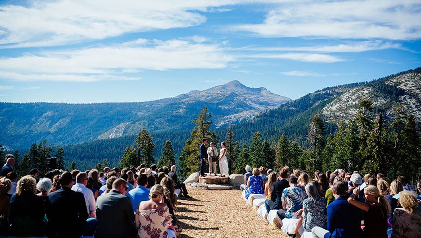 A rustic setting for your mountain wedding, shared with only you and your guests; Sierra-at-Tahoe Resort in South Lake Tahoe provides mountain views and stunning natural beauty that will create memories for a lifetime on your wedding day.