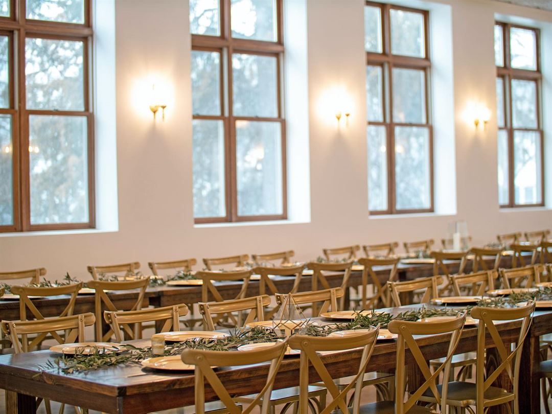 House on a Hill is a historic property in Twin Lakes dating back to 1894. It has been restored as a vintage modern space suited for any celebration. The event venue is a cleanly designed, white toned with gold accented space intended as a blank slate for you to decorate as you choose.
