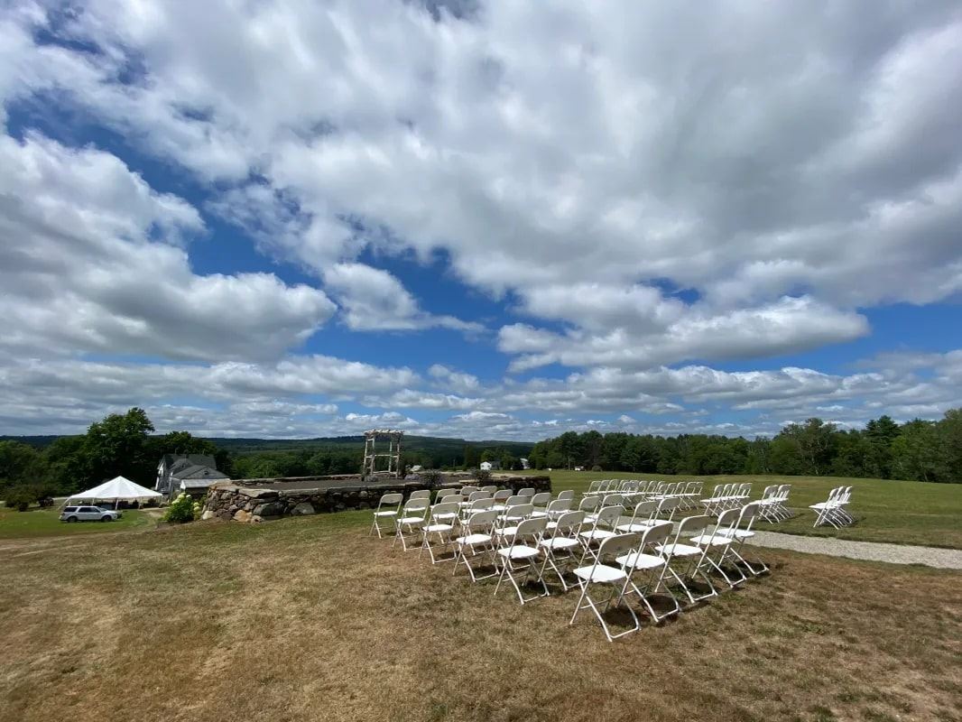 Sennebec Farm is 90 acres of rolling hay fields, woodland trails, and streams. Nestled among the rolling hills is the 170 year old renovated Farmhouse with a bridal suite perfect for your day, the weathered and rustic barn holds 50 for smaller events or cocktail parties, the Terrace – a stone-landscaped veranda perched at the highest point overlooking the entire property – and plenty of lawn space for a tent.