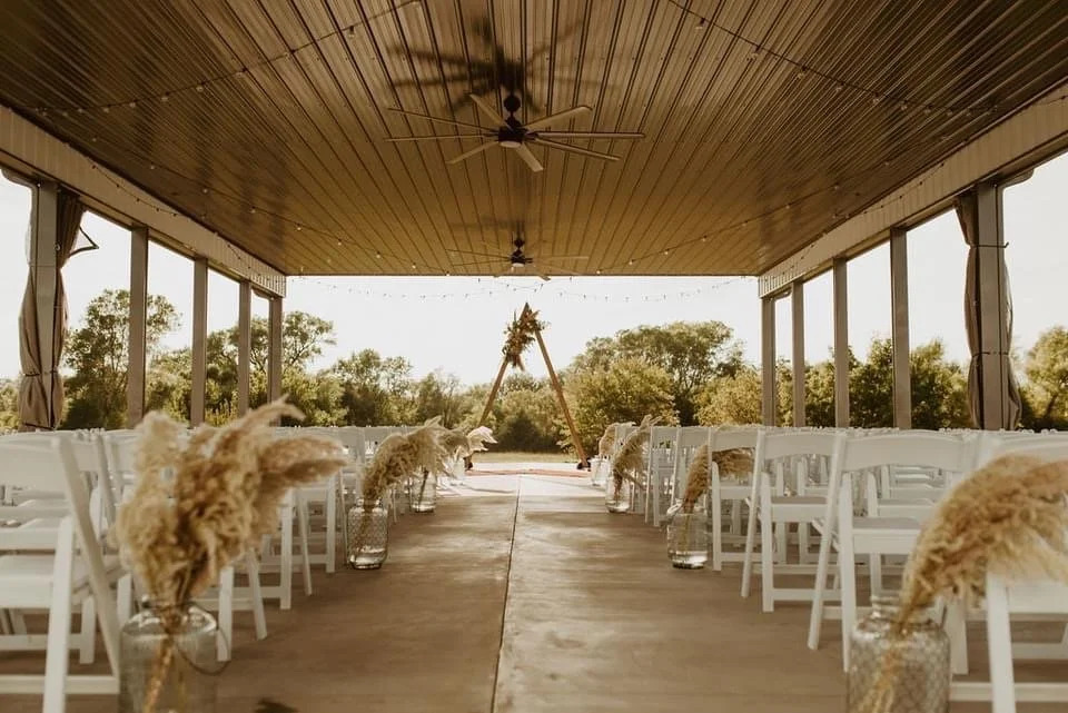The Highlands is 20 private acres of land just north of Wichita, Kansas. In addition to sprawling prairie, the grounds have beautiful ponds and a winding creek that are a great option for beautiful outdoor ceremonies and gatherings. With a capacity of up to 500 people, the venue is perfect for weddings, parties, and corporate events. Boasting a beautiful indoor-outdoor stone fireplace, 2 indoor-outdoor bar tending spaces, warming kitchen, accommodating bride and groom suites, handicapped accessible bathrooms, and a covered patio facing the sunset, this venue will be sure to exceed your expectations! Whether you are getting married, having a party, or hosting a large corporate event, we can give you the flexibility and customization you need.