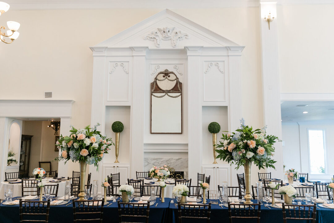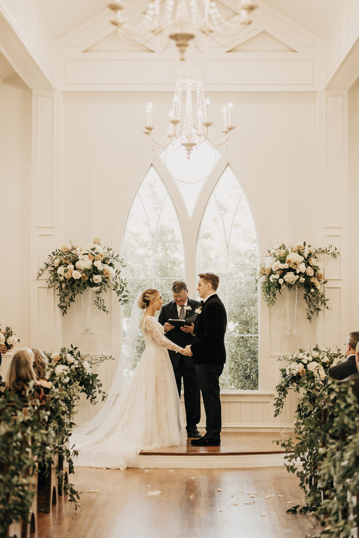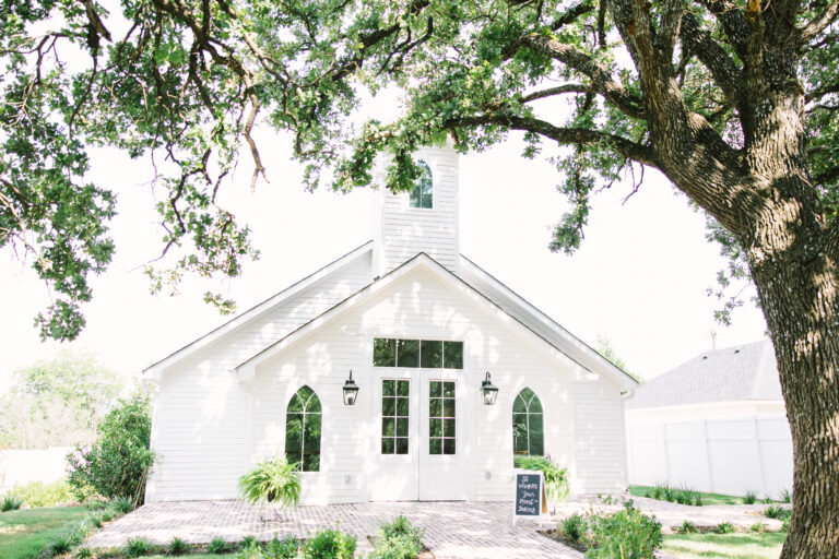 If the Federalist Estate’s vintage bar, floor-to-ceiling windows, and dueling grand staircases aren’t enough for you, there is an absolutely breathtaking little white chapel nestled in the trees just behind the main building. The chapel is a focal point in itself with its beautiful windows, white-washed walls, dark wood pews, and quaint chandeliers.
