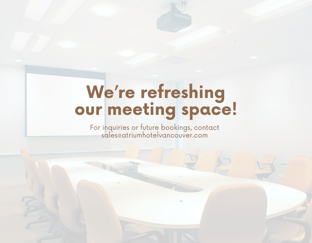 The Atrium Hotel Vancouver offers customizable event space - the Cypress Room. It can accommodate up to 50 guests, depending on the layout of the room.
