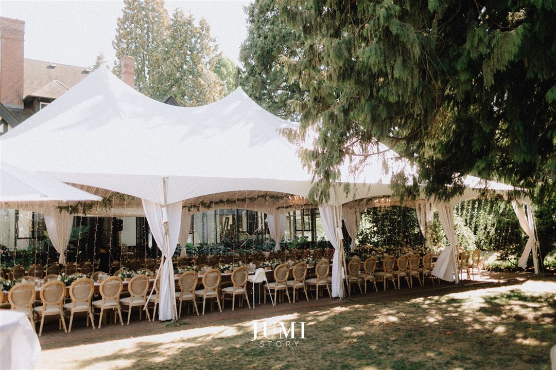 Perched atop a scenic vantage point, stands the perennial Brock House. Located just a mere 15-minute drive from downtown Vancouver and only 30-minutes from Vancouver International Airport, this 1912 Tudor Revival Heritage Mansion is gracefully nestled within meticulously manicured gardens. Adorned with towering trees and beautiful gardens, the lush surroundings offer an inviting outdoor setting for wedding ceremonies or corporate events, while the breathtaking sunset views set the tone for an unforgettable evening reception.