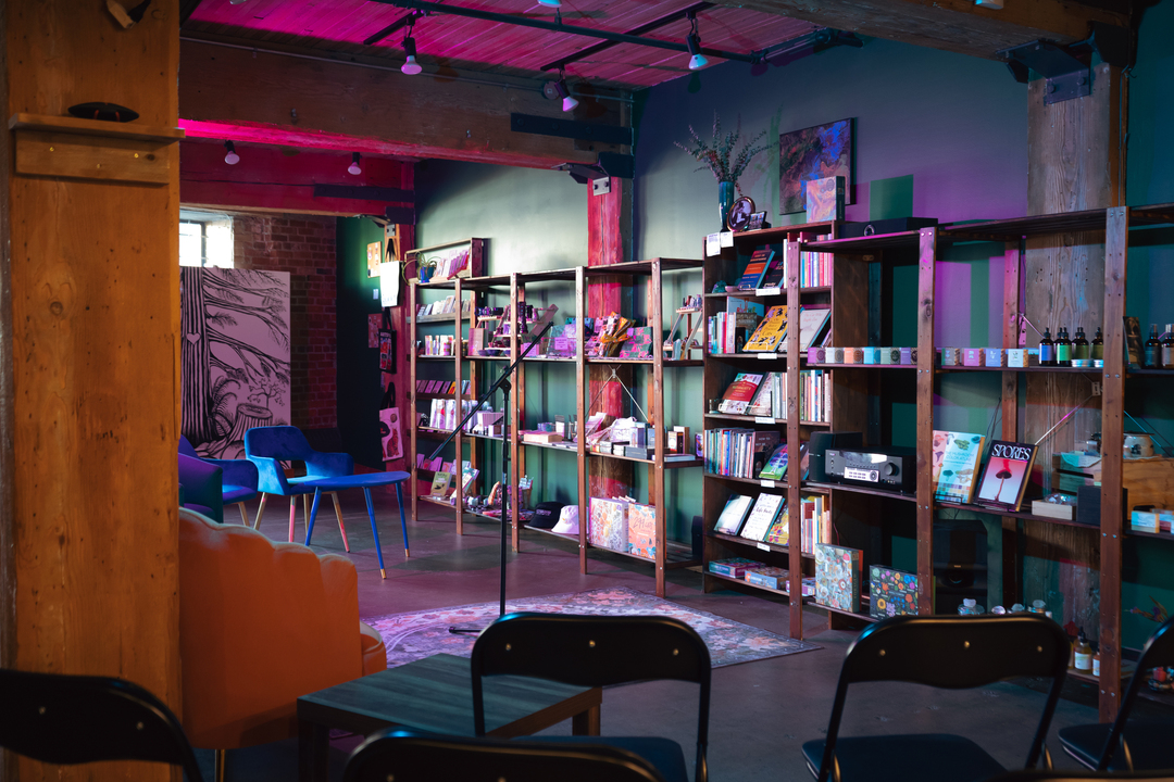 Enabling Arts is a cozy arts retail venue. We're perfect for book launches, poetry events, literary events, acoustic music sets, comedy shows, and other creative launches and events. We seat 60 people with some room for standing. We provide a simple concession of non-alcoholic drinks and snacks. The space is wide and creates an intimate audience. We have a mic set up and the ability to bring in some other simple sound equipment.