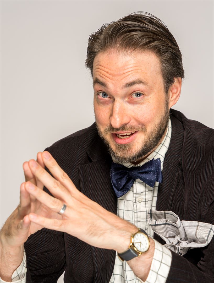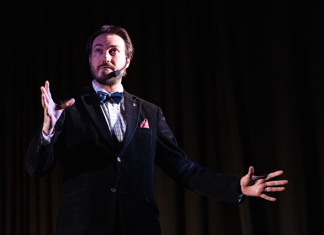 Rob Teszka performs charming, irreverent magic about interesting stories and unusual ideas. He entertains at private parties, holiday banquets, and intimate events throughout British Columbia. He also produces and hosts the Parlour Magic Show, Vancouver's very own magic variety show! A favourable review once called him "a genuine eccentric". It's probably because he knots his own bow ties.