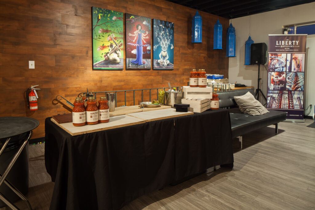 The Mezzanine at Soundhouse is an open concept 1800 square foot space. This unique and artistic event space is bright and airy, with lots of natural light, original wooden beams, and open-rafter ceiling. Windows are openable if you prefer fresh air instead of A/C.