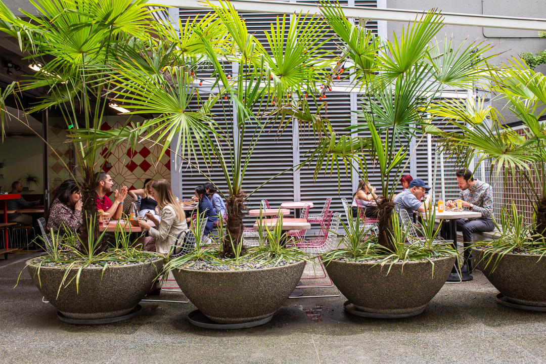 Step into your own oasis in the heart of downtown. Just minutes from Burrard Station, our colourful space feels like a retreat from the bustle outside. Inside, the vibrant room is warm and inviting, while the patio, lush with greenery, is made for summer events.