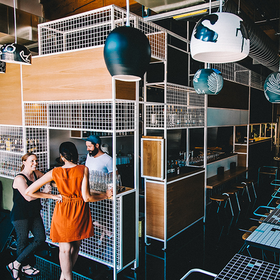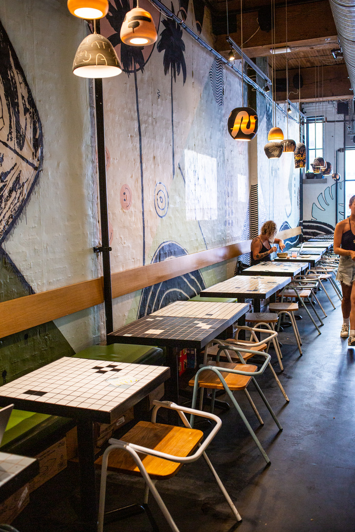 Find us on the upper promenade of Mainland Street at our intimate spot that channels the LA punk, surf, and skate scene of the ’80s and ’90s. Expect bold murals and splashes of neon pink and a sun-soaked patio when summer hits.