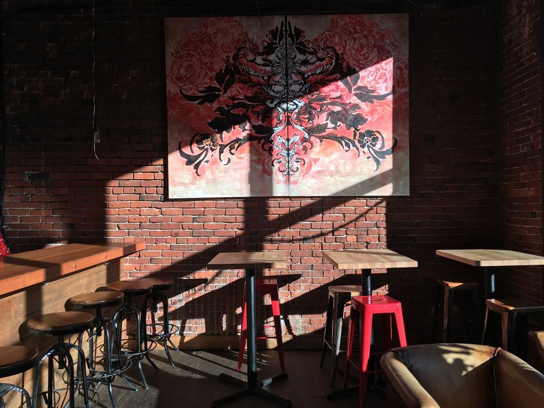 Our space becomes YOUR space! This coveted space is happily accepting new bookings. Just look at that beautiful room located within the Devils Elbow Restaurant- the rustic hardwood floor, the exposed brick, and massive windows allowing for stunning natural light. Over the years we've hosted everything from birthday parties, to wedding receptions. This space can be rearranged for a presentation, dinner, or completely arranged for a more spacious gathering. There is a large projector screen, HDMI plug-in, big comfy couches + chairs, and two private bathrooms.
