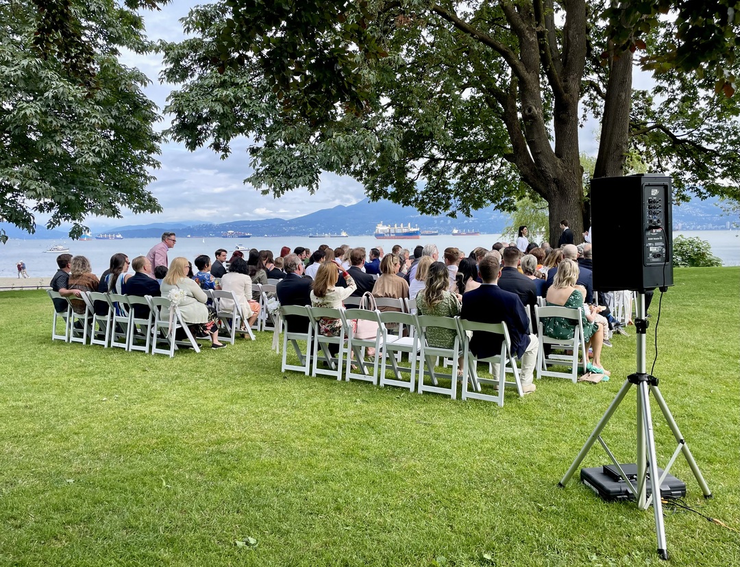 Our package includes big speakers, wireless microphone for vows/speeches, and dance floor lighting. Light MCing is also included in our price.