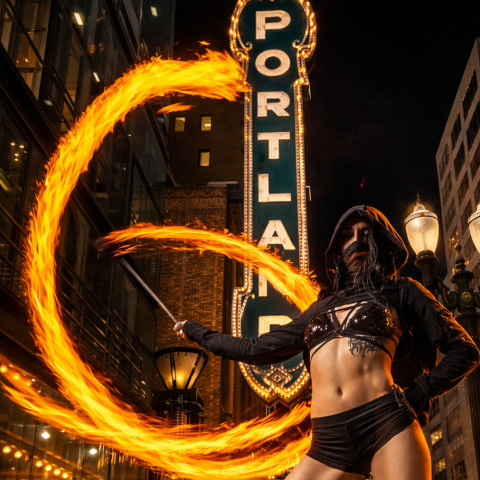 Damn Danielle delivers unforgettable, high-energy fire and LED performances for events in Portland, Oregon and Vancouver, Washington. Blending technical skill with theatrical flair, she creates mesmerizing stage shows, roaming entertainment, and interactive experiences perfect for corporate events, weddings, festivals, nightclubs, and private parties.