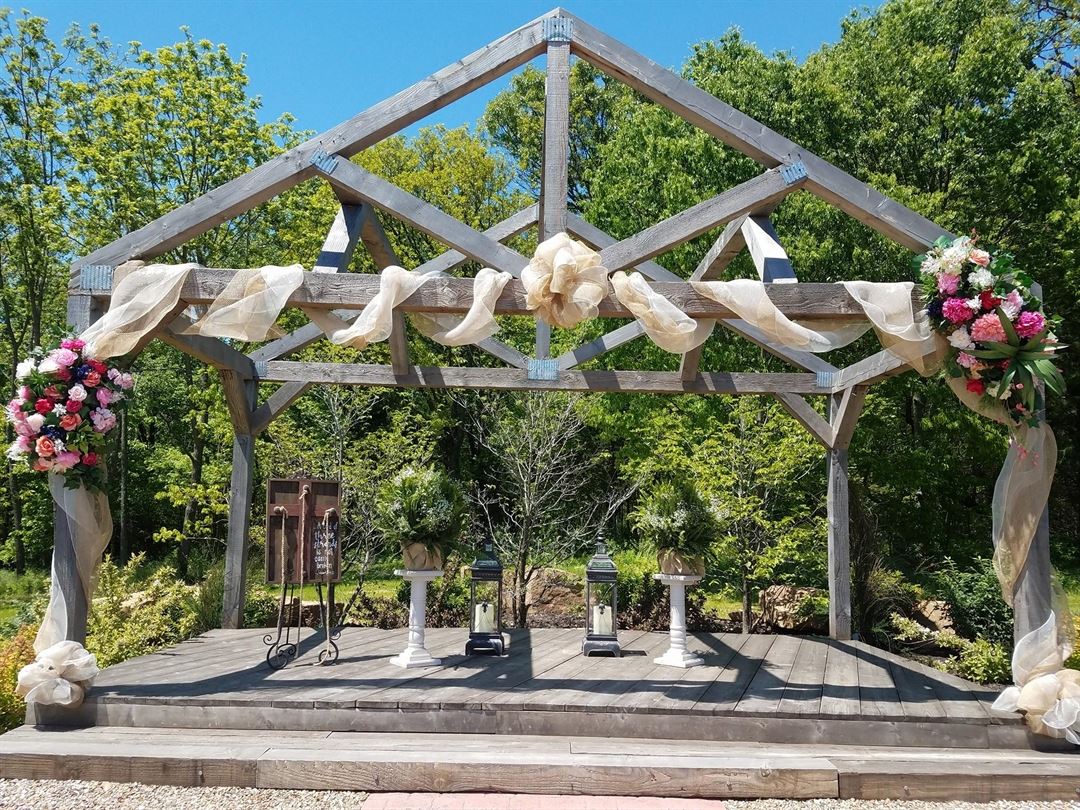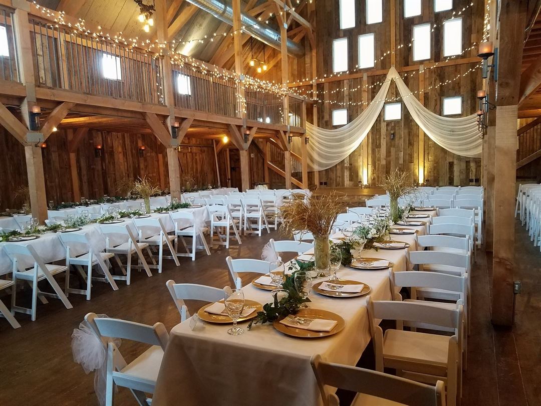 The Gambrel Barn is a new barn built to look like it has been standing for a long time... reclaimed wood adds warmth, the aged corrugated tin creates depth and a setting overlooking a valley makes The Gambrel Barn a country venue for every setting. We are a climate controlled barn thus can accommodate indoor and outdoor weddings, receptions, parties and other events every day of the year!