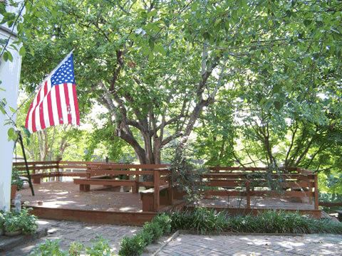 The Hall has two double door entrances, one facing the large and lovely Courtyard. A large deck overlooks the gardens, patios, water features and walkways. All shaded by the areas oldest Japanese Magnolia tree. The Courtyard can accommodate garden weddings family reunions and other outdoor events. We do not require use of preferred caterers or party vendors.