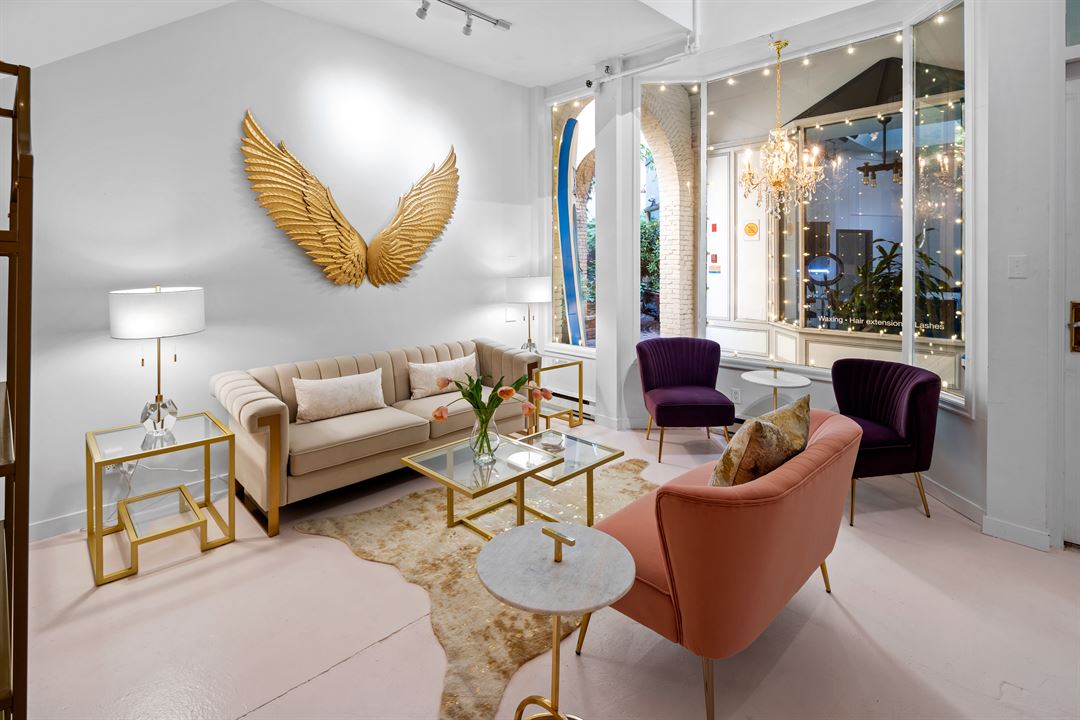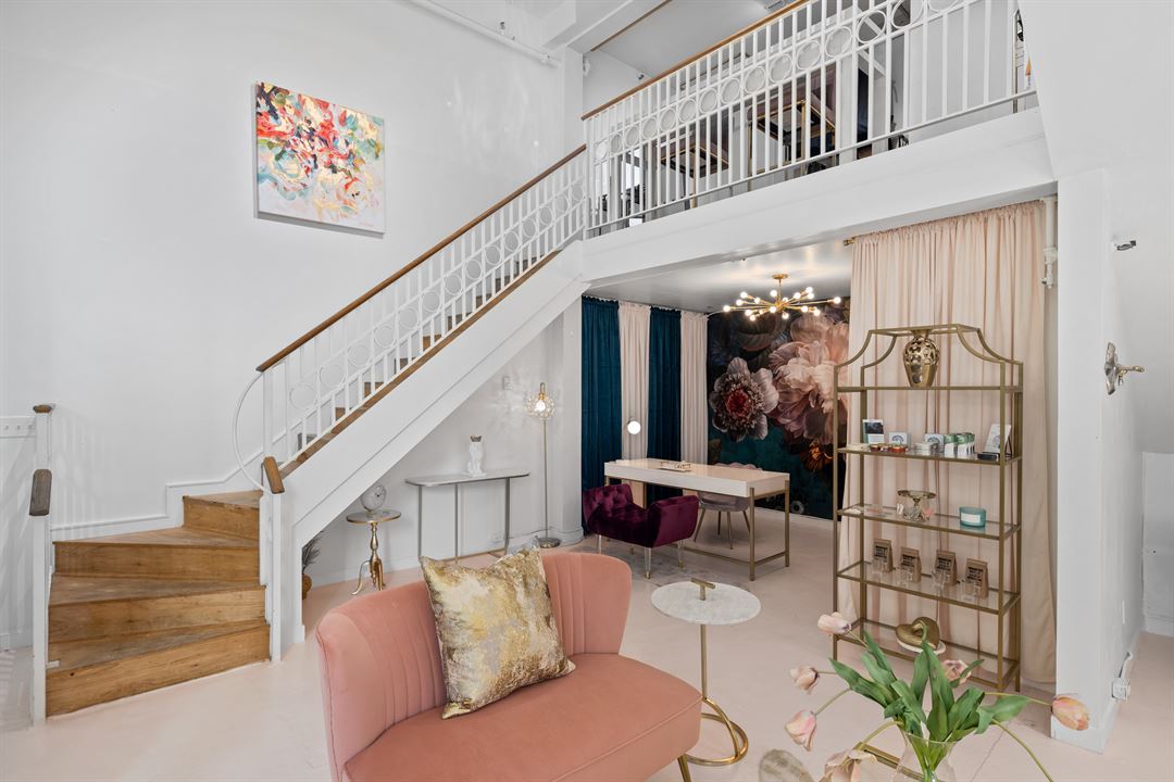 Gorgeous loft space professionally designed with romantic and colourful wallpaper, velvet couches and sophisticated accents. Perfect space for; photoshoots, intimate gatherings, women’s/men’s circles, mixers, book clubs, socials and meetings, bachelorette parties. This is a loft space with high ceilings and comfortable seating for 10-14 people. Standing room for 30 is comfortable.