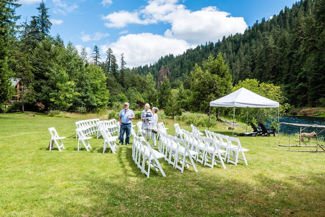 We are an 8 room bed and breakfast on 5 acres with 400 feet of river frontage on the McKenzie River. Your guests can fish in the back yard - or drive up to the wonderful waterfalls and hiking trails. We allow weddings or other functions to be held at the Lodge (up to 50 people) - with a two night minimum on all rooms (maximum of 18 people staying on site) - folks staying at the Lodge receive a free breakfast. An event fee is charged for use of the grounds for events such as weddings, parties etc. Feel free to contact us for more information!