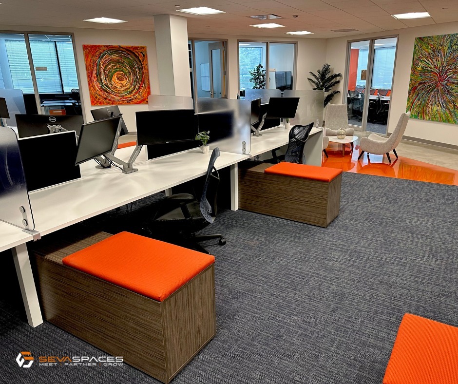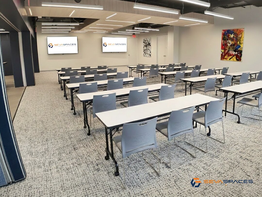 With high ceilings, glass entry, original local artwork, and tranquil pond views, the venue offers a polished yet welcoming atmosphere. Equipped with advanced A/V technology, high-speed Wi-Fi, free on-site parking, and support for outside catering, SevaSpaces provides everything needed for successful, stress-free events.