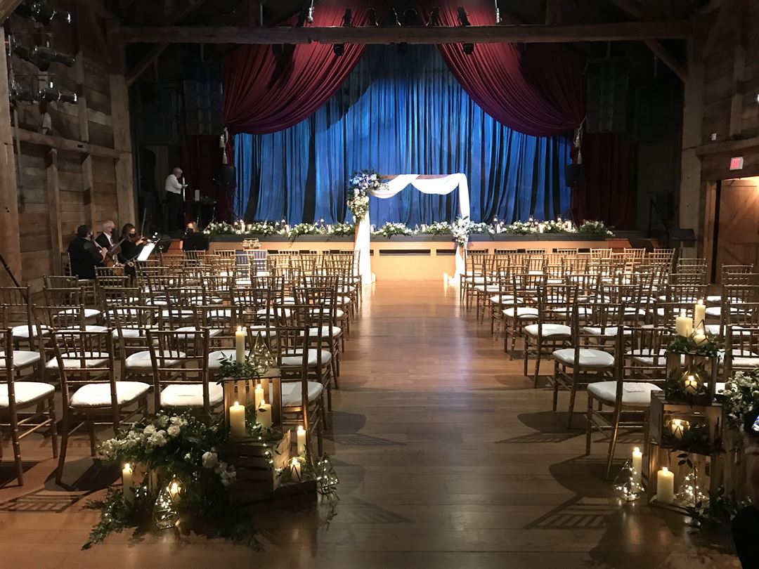 The historical showpiece is comprised of two connected restored 18th century barns with modern amenities, including convenient parking, a service kitchen and bar, ample restrooms, and dressing room facilities.