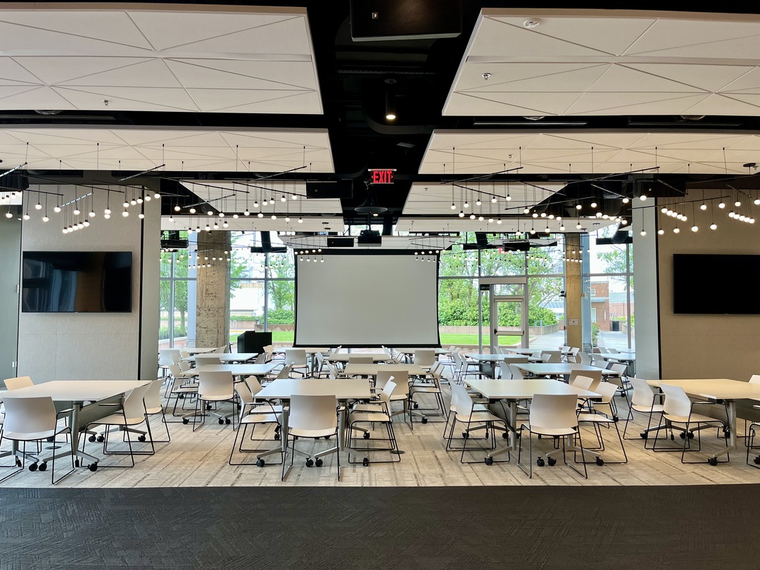This bright, contemporary meeting and event space offers a flexible open layout with natural light. It is ideal for corporate meetings, trainings, workshops, strategy sessions, seminars, as well as social events such as small weddings, holiday celebrations, milestone dinners, and family gatherings. The room can be set in multiple layouts and can support both small and larger groups.