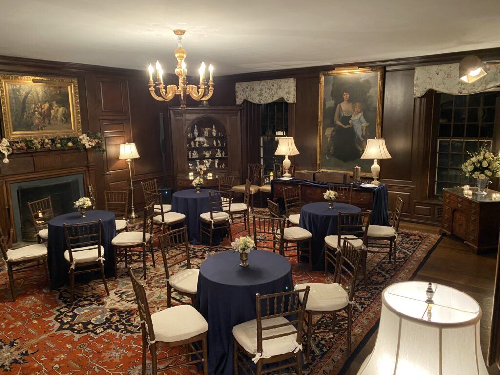 The use of the house consists of the Music Room, the Pine Room, the Dining Room, the Kitchen, and a Groom’s lounge. There is also a Bride’s bedroom suite for use on the second floor and the Puppy House (small den) adjacent to the first floor off the outside reception area used to drop-off your décor and other items the morning of your event. The house is air-conditioned, however the reception, for the most part - especially seating - would be outside on the terrace. Appleford also has a piano and three gas fireplaces on the first floor of the house to add to the charm and ambiance to your event.