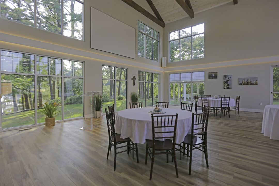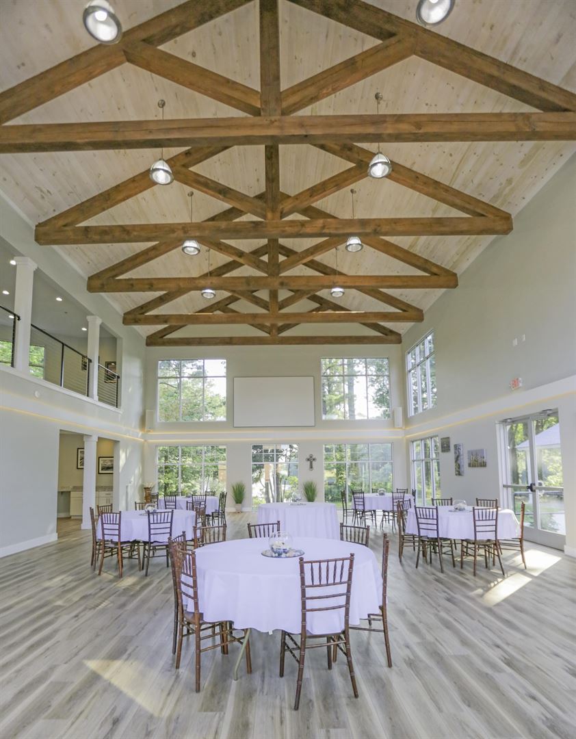 The venue is so accommodating for couples who need a wedding/reception space in one place. There are to places to hold a wedding, in the beautiful church, or outdoors with a backdrop of the lake. The reception space is big enough to accommodate 125 guest comfortably. The couples can hire their own cater, and they have a full use of the kitchen. Kyle and Amanda are great to help you with all your needs. I highly commend this venue. Tracey Scott