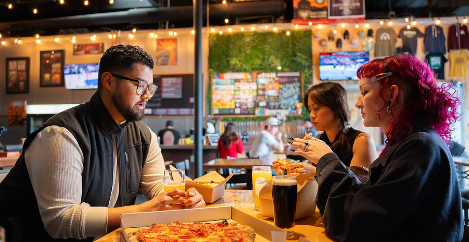 Our tasting room offers a unique blend of industrial and rustic charm, set in a spacious warehouse with an earthy, welcoming vibe. Warm wood accents, natural textures, and thoughtful lighting create a cozy yet open atmosphere. Whether you're here to enjoy a fresh pint, meet up with friends, or take part in one of our events, our space is designed for both relaxation and community. With a laid-back feel and plenty of room to gather, it's the perfect spot to experience great beer in a comfortable and inviting setting.