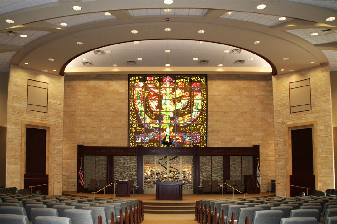 Congregation Beth El is proud to offer the largest social hall housed in a synagogue setting in Southern New Jersey. Our exquisite Social Hall has seating for 450, with a 1300 sq. foot dance floor and a large landscaped courtyard with paved patio for outdoor celebrations. The Sanctuary has warm cherry wood accents, stained glass windows and comfortable theatre style seats. For weddings, we have a beautifully appointed bride’s room, spacious room for the groom’s tisch and space available for a Bedeken.