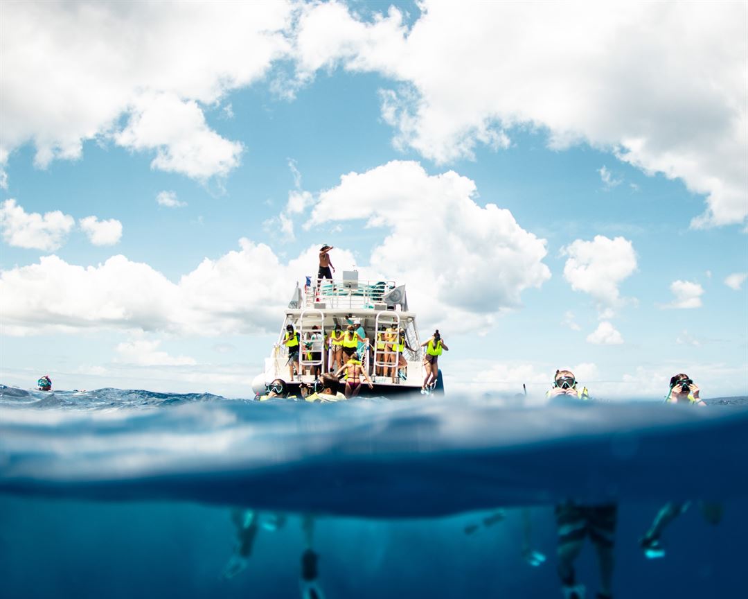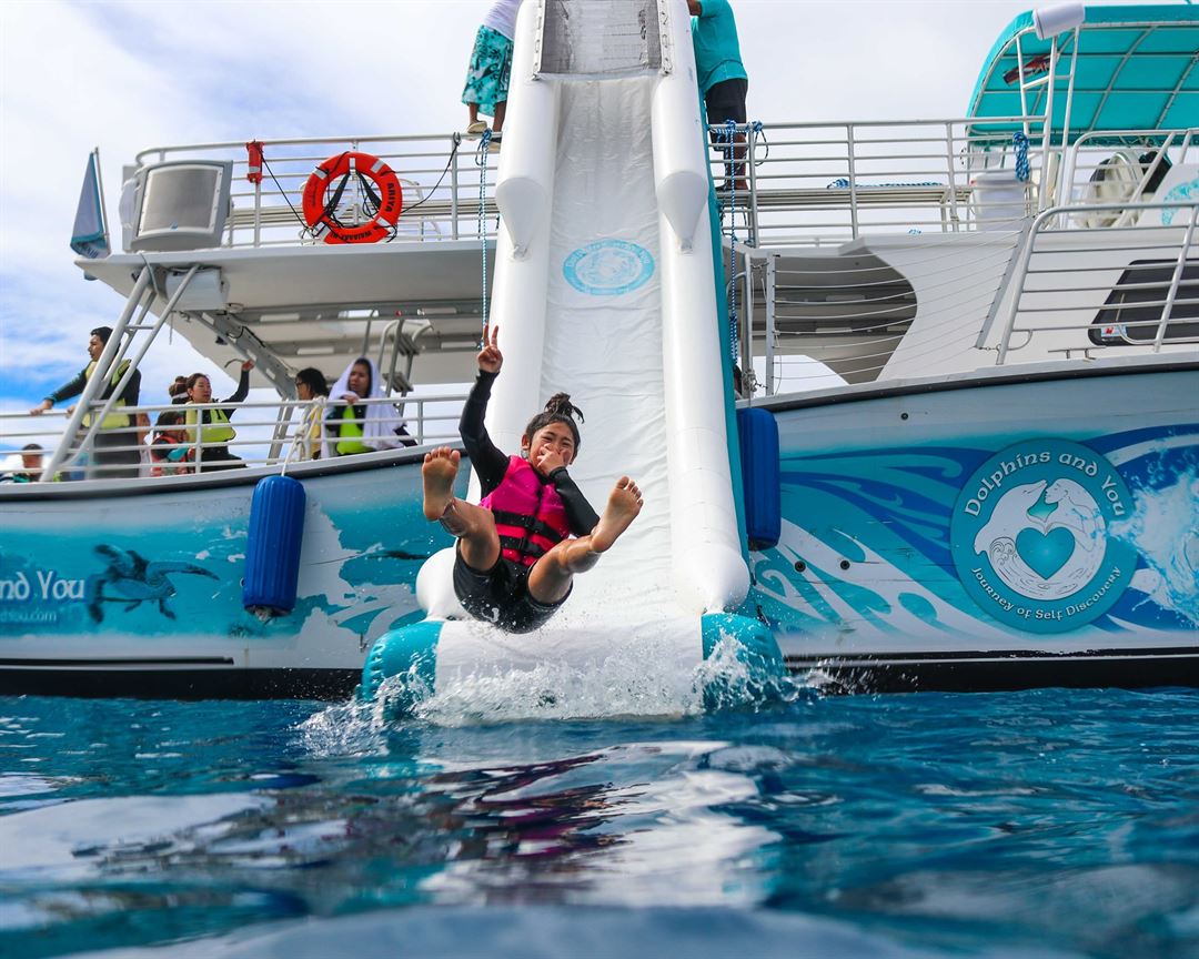 Design your perfect day snorkeling and cruising around the West Coast of Oahu! This private charter is equipped with two bathrooms, four showers, wraparound seating on the bow and surround sound. It can accommodate up to 65 passengers and is perfect for work gatherings, birthday parties and more!