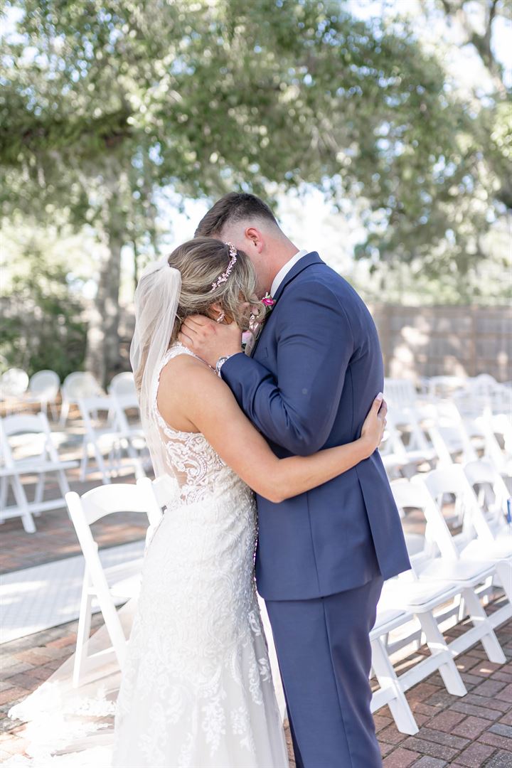 The doors open and she walks out with her arm snuggled to her dad's. A smile overtakes her groom's face as he sees his beautiful bride looking so incredible that it takes his breath away. He raises his hand to her and places his thumb and first finger together to let her know even without speaking, she looks phenomenal! In that moment, I smiled as I felt the overwhelming excitement they both felt and couldn't help but feel that excitement for them, reminding me of my own wedding day. Looking back, I realize this is one of the best parts of what I do.