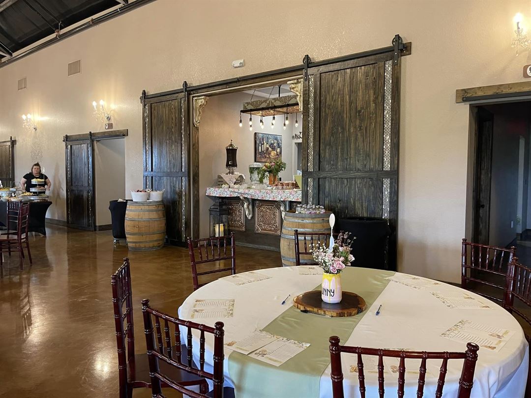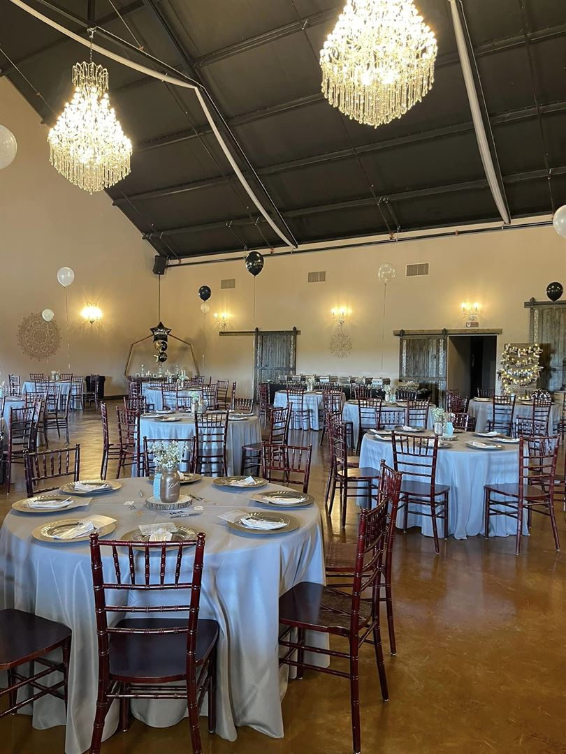 Magnolia Rose Event Center is where country meets class. Our Beautiful unique barn sits on 30 acres. This rustic look brings country to its best. As you open the large double iron glass doors to enter you are greeted with its beauty. You will be amazed with the four beautiful eight-foot chandeliers as they sparkle from the thirty-four-foot-tall ceilings. You will be completely stunned when you see the beautiful unique back wall. The barn doors highlight the room, unlike any barn door you have ever seen.
