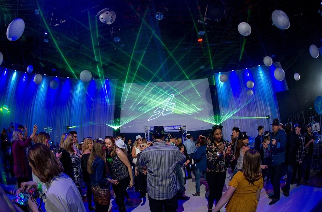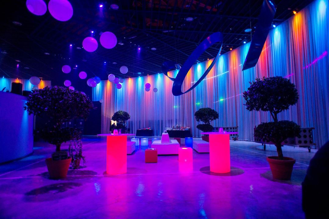 The Fuge is our most exclusive and expansive venue. Stepping into this space is truly like stepping into something out of this world. This 11,000sqft circular chamber houses state-of-the-art customizable, interactive lighting, 2 38’ movie screens, and the most high-tech audio available which is all encompassed by 24’ walls draped in the most elegant, light catching textiles you can imagine. Your guests will dance the night away under the arm of the world’s first, largest and fastest human centrifuge and feel a sense of distinction that can only be attained here.