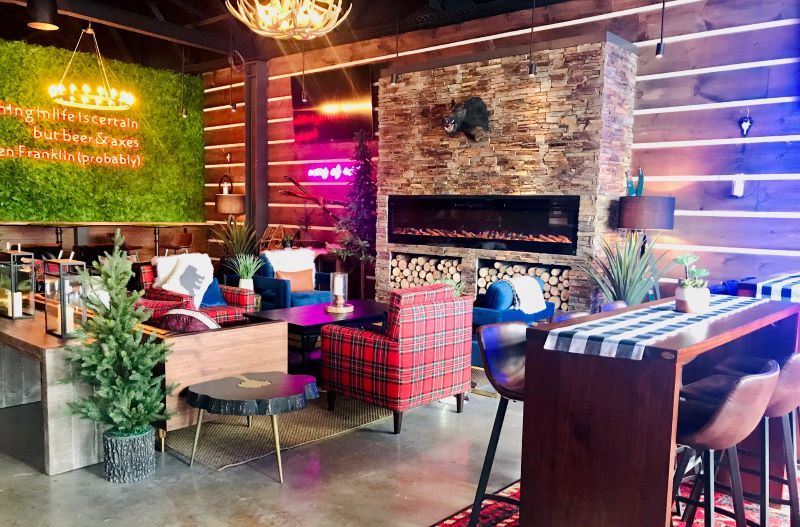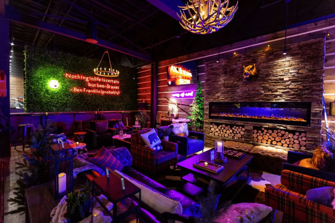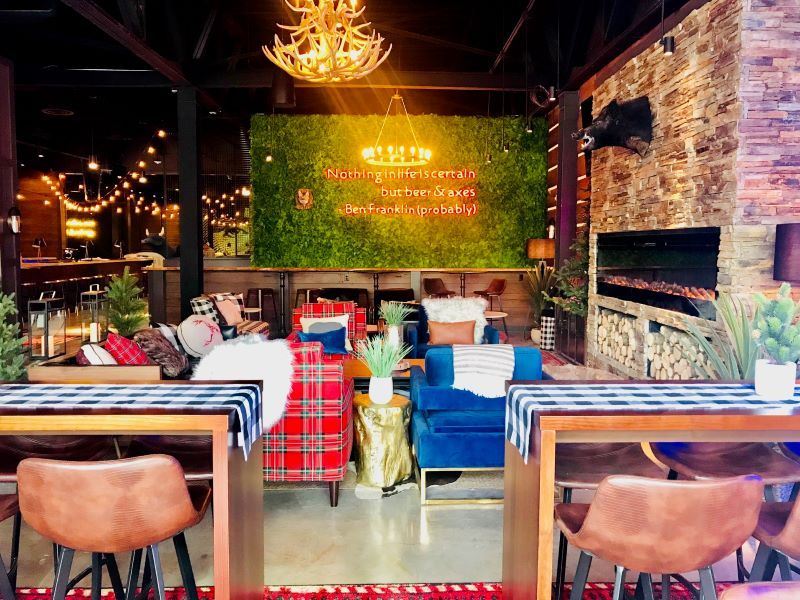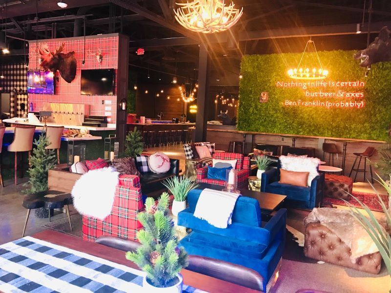 Release your inner lumberjack for some fun with friends, family and co-workers! Our beautiful, lodge-themed lounge, outdoor patio and moose bar make us the perfect place to host your next weekend hangout, happy hour, birthday, bachelor/ette party, unique wedding, baby shower, team-building activity or corporate event. Grab a beer, cocktail or wine and some of our delicious food while you're here - no axe-throwing is required.